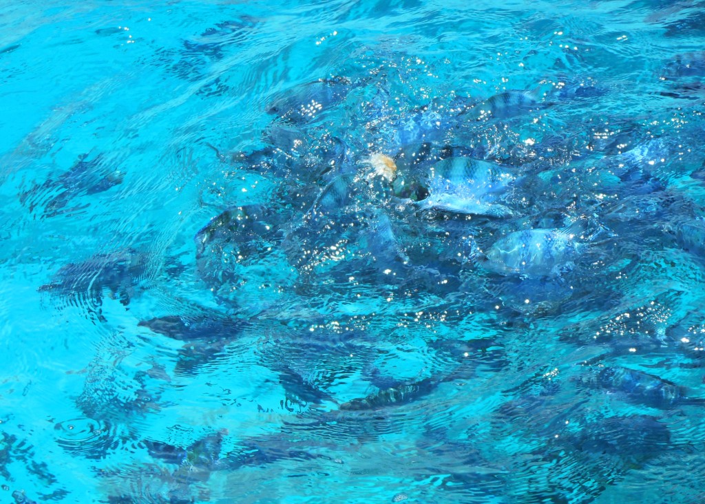 Apologies for the terrible picture, but we fed bread to a crap ton of beautiful fish.